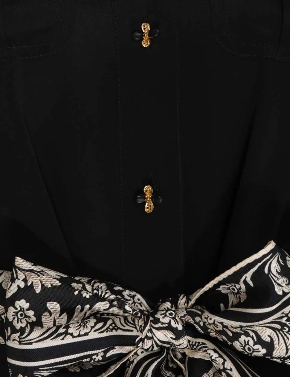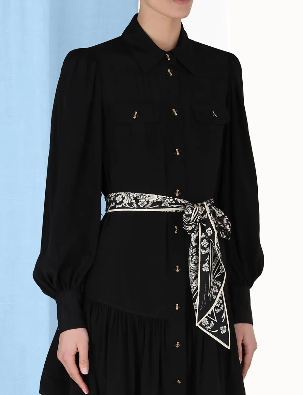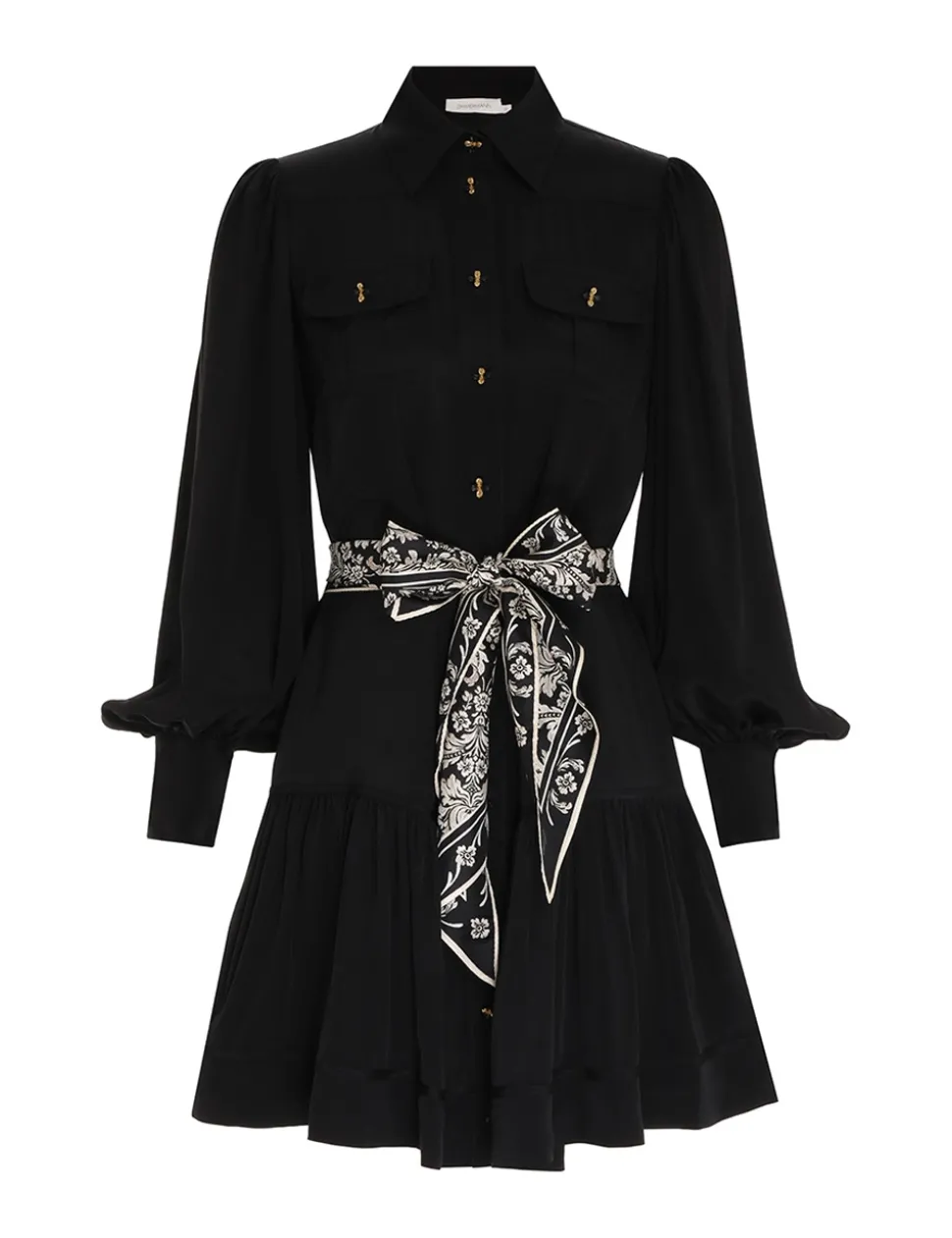 The Shirt Mini Dress In Black From Our Fall 2023 Collection, Luminosity. A Shirt Style Mini Dress Featuring Chest Patch Pockets, Blouson Sleeves And Contrast Binding Throughout.- Shirt Style Mini Dress