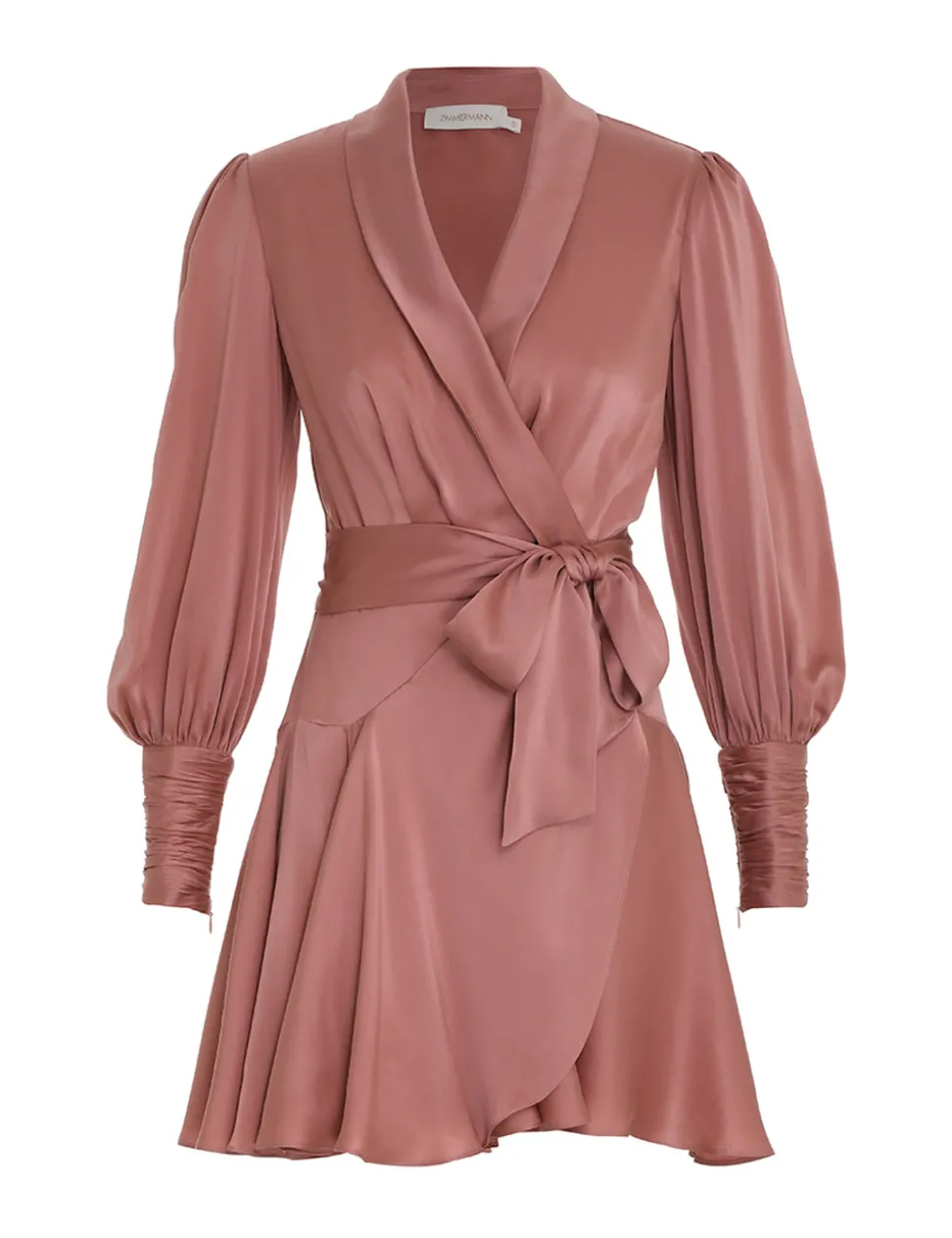 The Silk Wrap Mini Dress In Dusty Pink From Our Fall 2023 Collection, Luminosity. A Silk Mini Dress Featuring A Wrap Front Silhouette, Blouson Sleeves And Flounce Skirt.- Silk Midi Dress