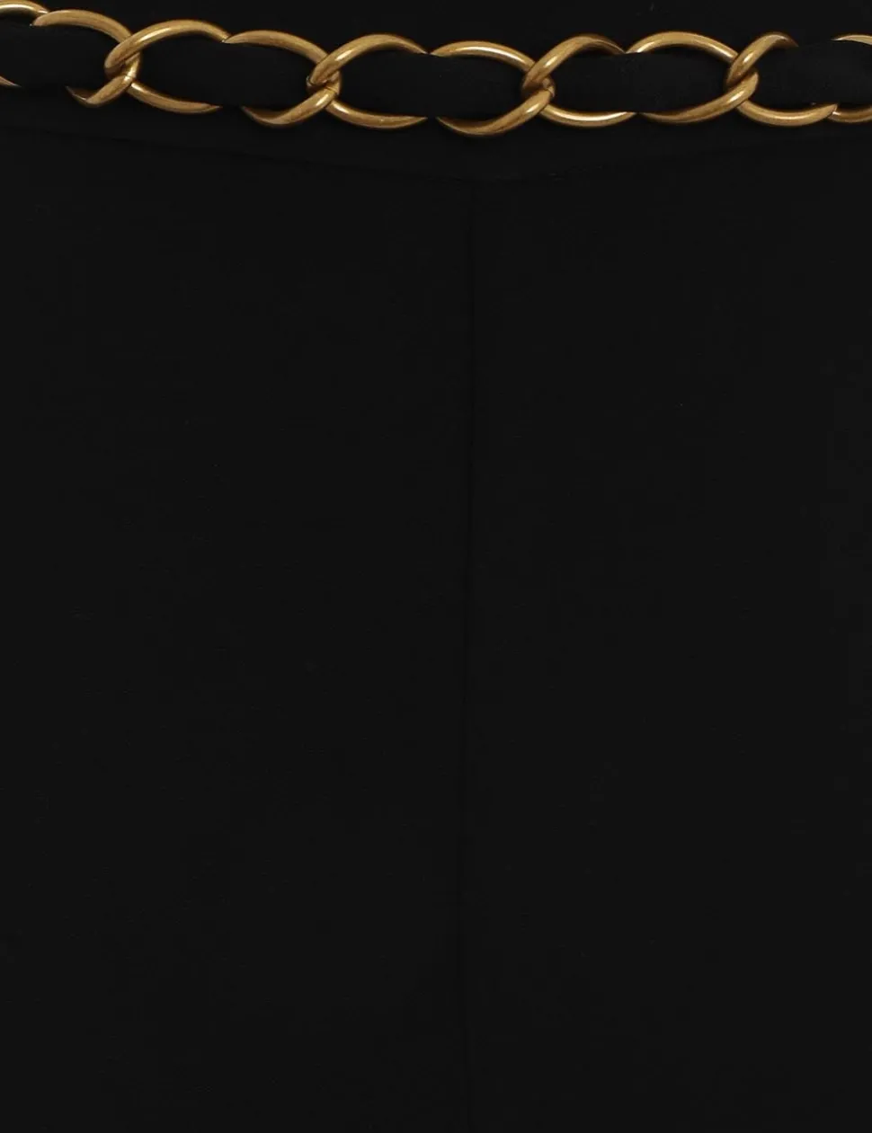 The Skinny Flare Pant In Black From Our Fall 2023 Collection, Luminosity. A High Waisted Flared Pant Featuring A Gold Chain Belt.- Flared Pant