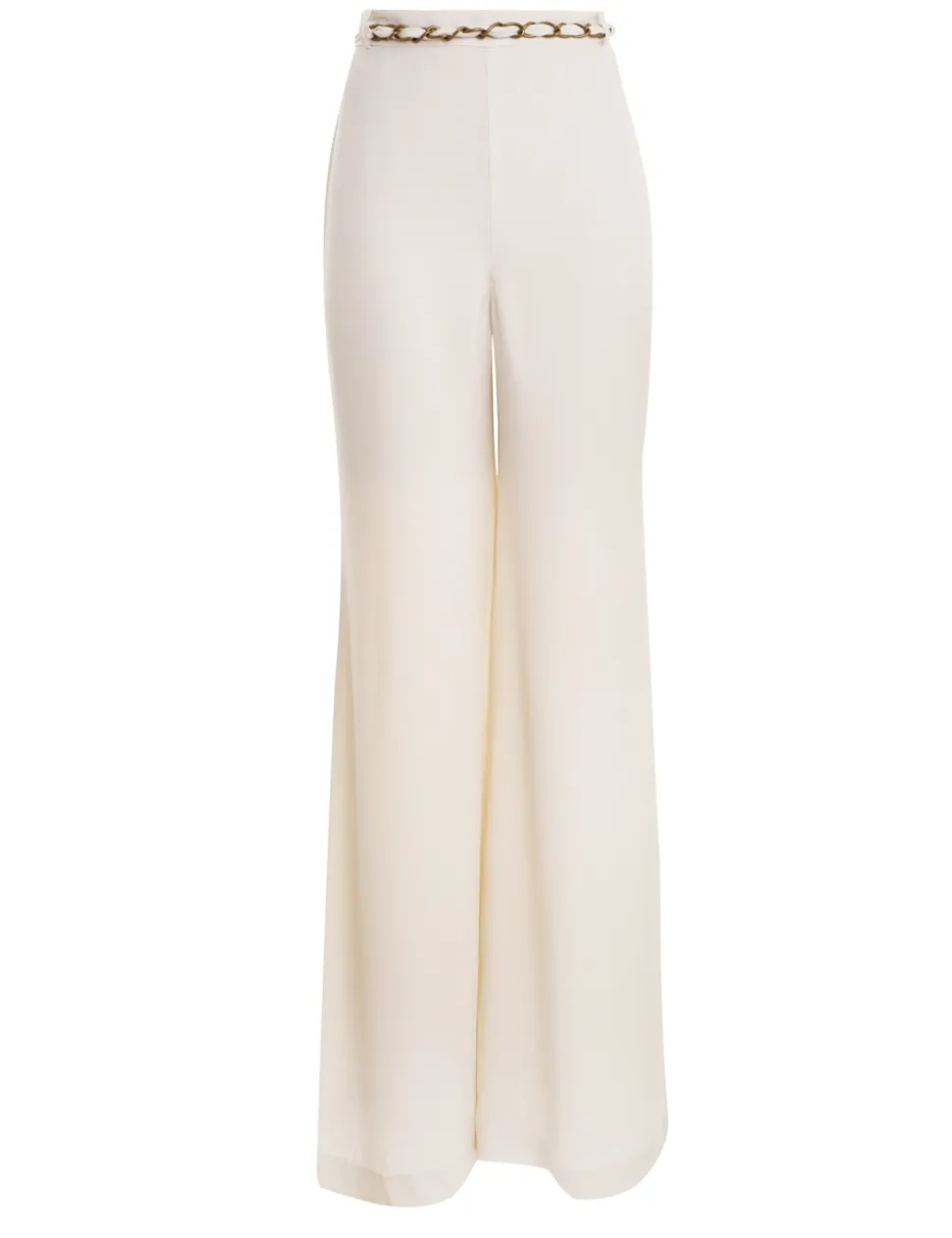 The Skinny Flare Pant In Cream From Our Fall 2023 Collection, Luminosity. A High Waisted Flared Pant Featuring A Gold Chain Belt.- Flared Pant