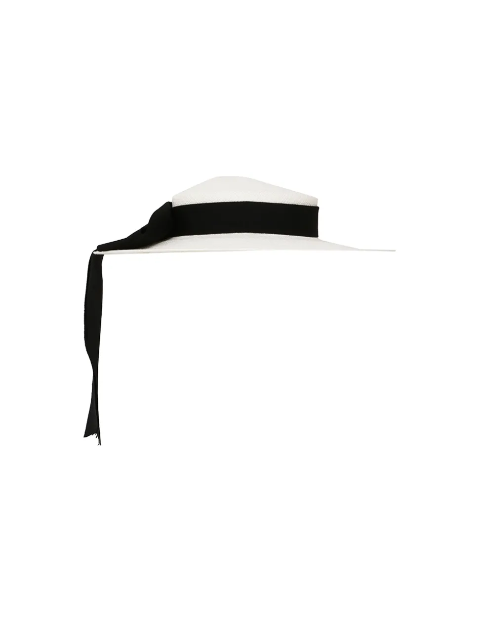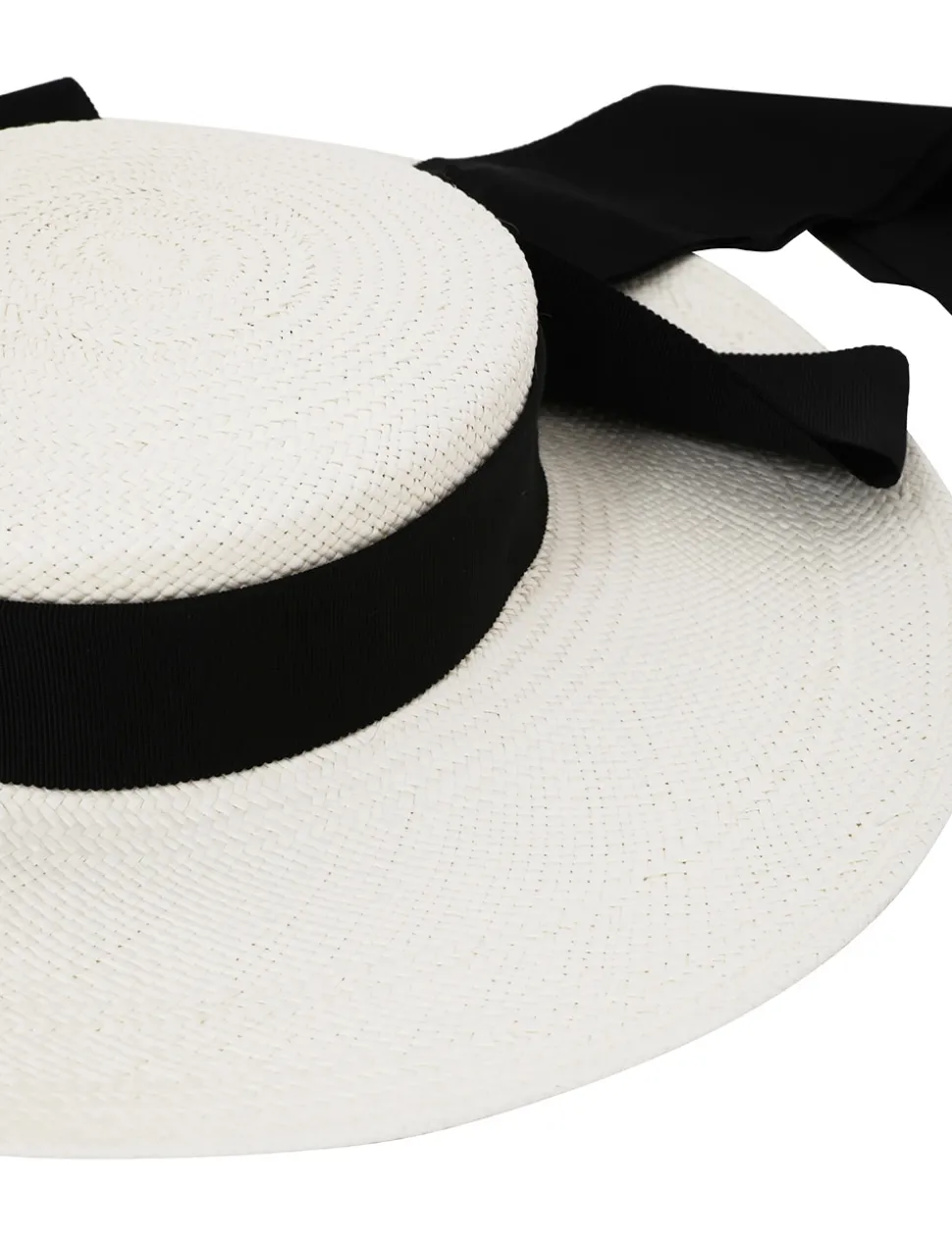 The Straw Boater In Ivory From Our Resort 2024 Collection, Matchmaker. A Wide Brim Straw Hat Featuring A Contrast Tie Around The Crown.- Straw Boater