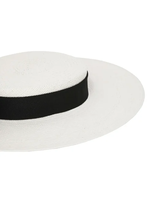 The Straw Boater In Ivory From Our Resort 2024 Collection, Matchmaker. A Wide Brim Straw Hat Featuring A Contrast Tie Around The Crown.- Straw Boater