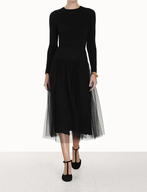 The Tulle Skirt In Black From Our Fall 2023 Collection, Luminosity. A Tulle Midi Skirt Featuring A Basque Waist And Raw Hem.- Midi Skirt