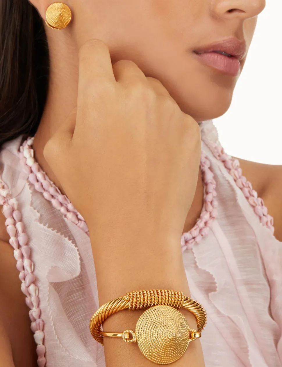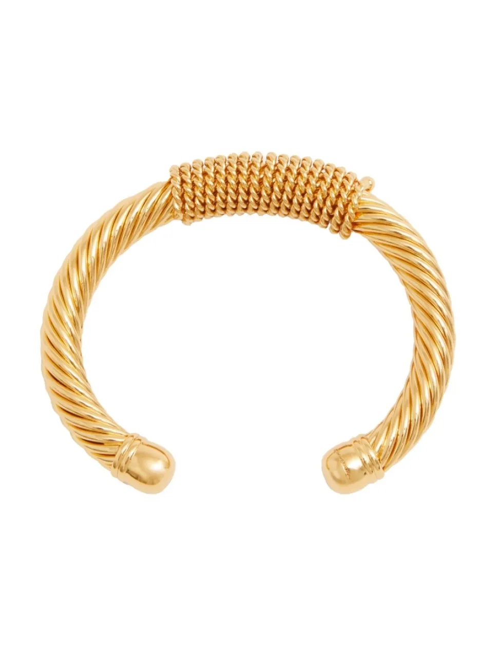 The Twisted Rope Cuff Gold From Our Spring 2023 Collection, Wonderland. A Gold Plated Cuff With Rope Look Detailing.- 20K Gold Plated