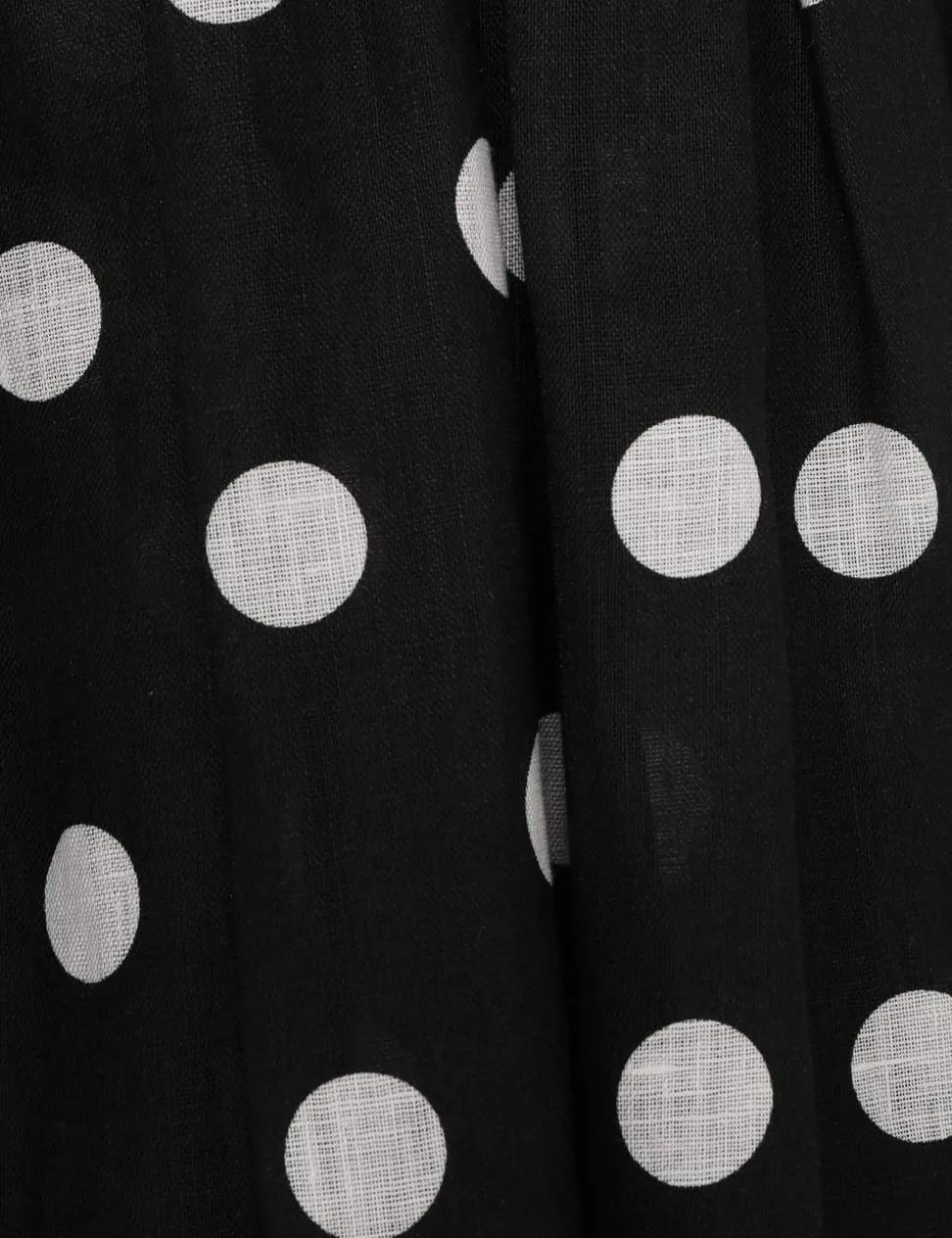 The V Neck Mini Dress In Black/Cream Dot From Our Resort 2024 Collection, Matchmaker. A Linen Mini Dress Featuring Short Sleeves And A Plunge Neckline, Finished With A Drape Detail Along The Waist.- Linen Mini Dress