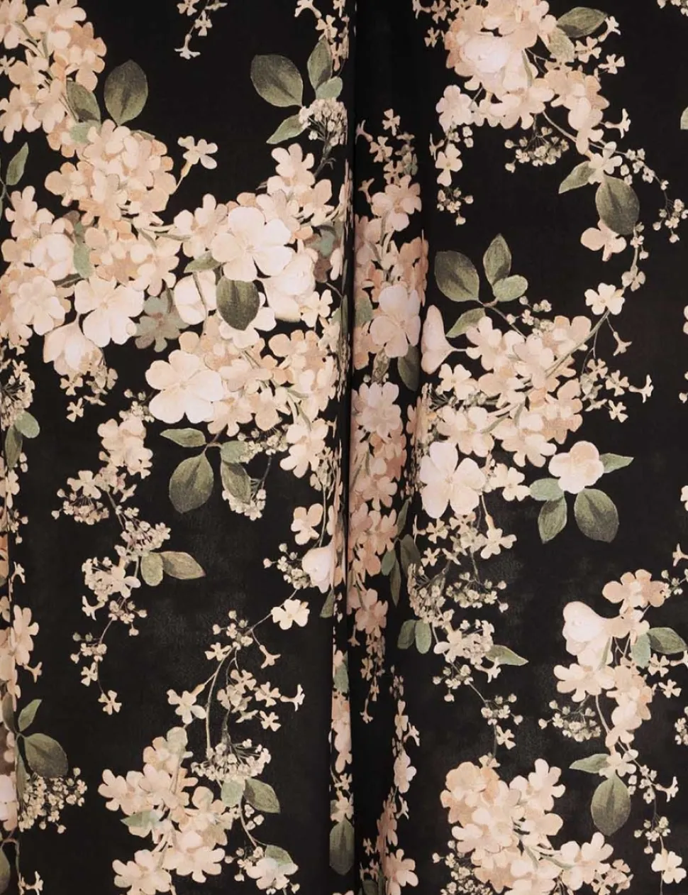 The Wide Leg Pant In Black Ivory Floral From Our Fall 2023 Collection, Luminosity. A High Waisted Wide Leg Pant Featuring Side Seam Pockets And A Removable Belt.- Wide Leg Pant