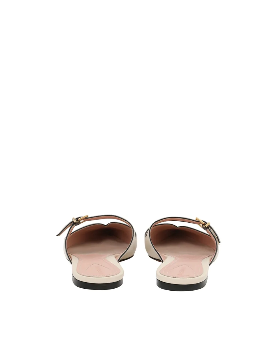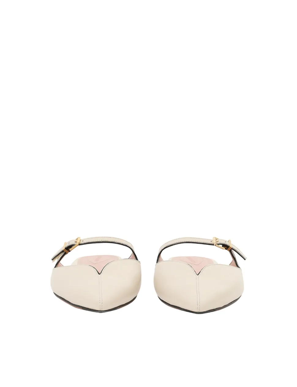The Aura Mule 65 In Macadamia From Our Resort 2024 Collection, Matchmaker. A Leather Mule Featuring A Pointed Toe And Gold Hardware.- Leather Mule