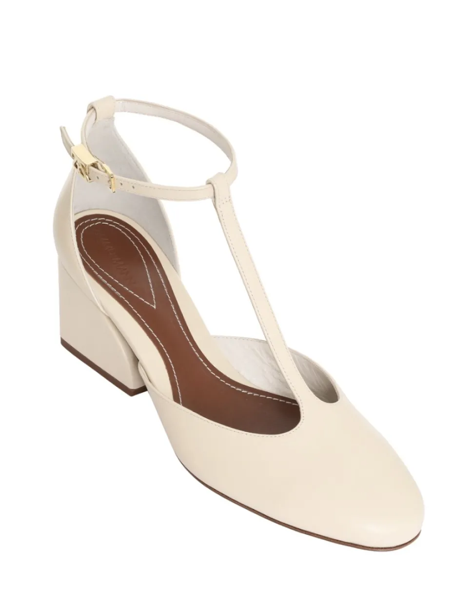 The Zimmermann Farrow Pumps 55 In Cream From Our Fall 2023 Collection, Luminosity. A Leather Pump Heel Featuring A T-Bar Detail.- Made In Italy