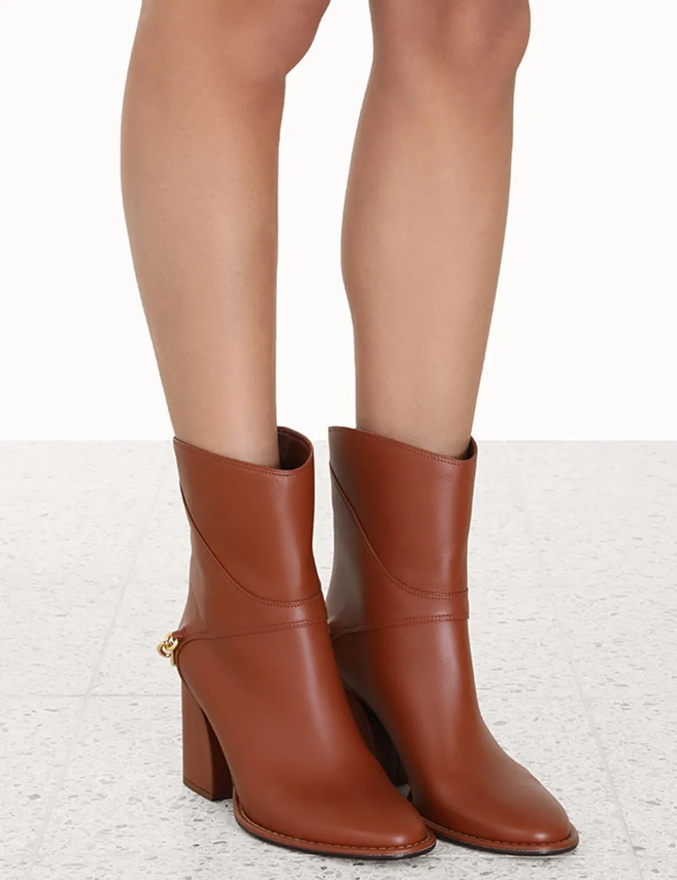 The Zimmermann Gallop Low Boots 75 In Tan From Our Fall 2023 Collection, Luminosity. A Leather Boot Featuring Topstitching Throughout And Custom Engraved Stirrup Hardware.- Made In Italy