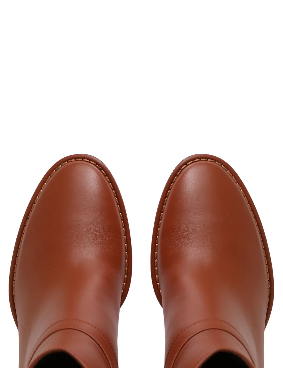 The Zimmermann Gallop Low Boots 75 In Tan From Our Fall 2023 Collection, Luminosity. A Leather Boot Featuring Topstitching Throughout And Custom Engraved Stirrup Hardware.- Made In Italy