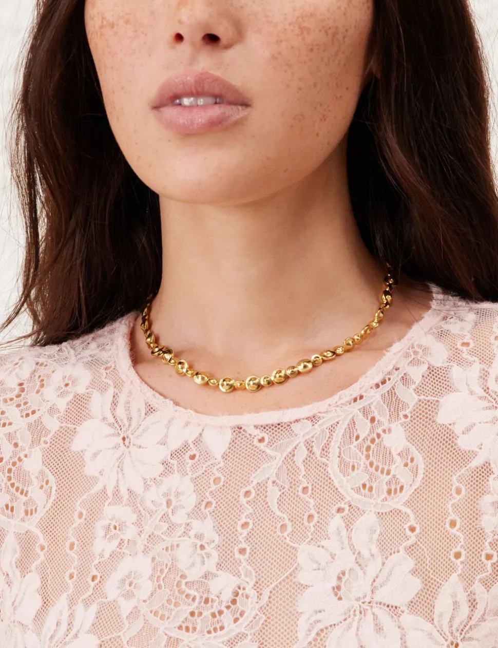 The Zimmermann Swing Necklace In Gold From Our Resort 2024 Collection, Matchmaker. A Gold Plated Necklace Featuring Sphere Beads Throughout.- 12Kt Gold Plated