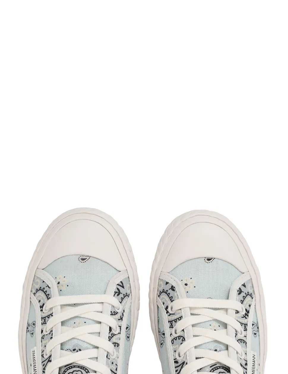 The Twist Low Top Sneaker In Blue Bandana From Our Resort 2024 Collection, Matchmaker. A Linen Printed Low Top Sneaker Featuring A Rope Look Sole.- Linen Sneaker